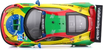 Model zdobí detailní potisky sponzorů a startovní čísla inspirovaná skutečnými závody GT3, což umocňuje realistický dojem ve vitríně.