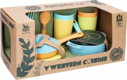 Ekologické kuchyňské nádobí z bioplastu přináší dětem zábavu i učení. Sada je lehká, bezpečná a odolná – ideální pro každodenní hraní i rozvoj fantazie. Obsahuje vše potřebné pro malou kuchyň: pánvičku s pokličkou, hrnec, talíře, sklenice i příbory. Vhodné pro děti od 3 let.