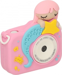 Díky růžovému silikonovému krytu a hravému designu s motivem mořské panny je fotoaparát nejen atraktivní, ale i odolný proti nárazům, což zaručuje dlouhou životnost.