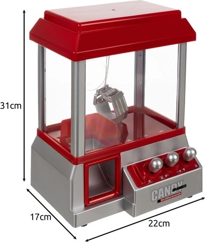 Solidní dráp na řetízku spolehlivě uchopí drobné sladkosti či malé hračky. Výhra propadne do červeně podsvícené schránky – efekt, který děti milují.