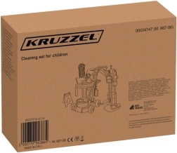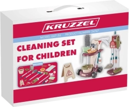 Tento velký úklidový set pro děti KRUZZEL 18 v 1 nabízí vše, co malí pomocníci potřebují k nápodobě skutečného úklidu. Najdete v něm pevný vozík se dvěma policemi a háčky, samostatný stojan na náčiní a hračkářský vertikální vysavač na 3× AA baterie, který nasává lehké kuličky a má průhledný zásobník. Díky kvalitním plastům PP, HIPS, ABS a dalším materiálům je sada zároveň lehká, odolná a bezpečná pro dětské hraní.