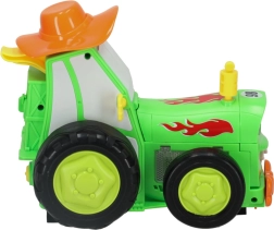 Traktor přehrává veselou hudbu a velmi snadno se ovládá pomocí kontroléru.