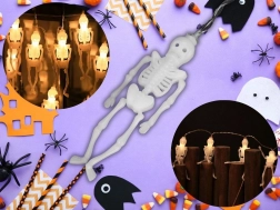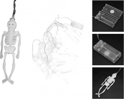 Stylová světelná dekorace, která během okamžiku promění interiér i chráněný exteriér v tajemné halloweenské prostředí. Každý z 10 miniaturních kostlivců má samostatnou LED diodu, díky čemuž je světlo rozprostřeno rovnoměrně po celé délce řetězu. Teplá bílá barva vytváří příjemnou, přesto strašidelnou záři.