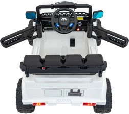 Řidičský zážitek podtrhuje audio panel s USB/MP3/Bluetooth/AUX, zvuky a klakson na volantu a plynulý start, který je šetrný a bezpečný. Rodiče mají vše pod kontrolou díky ovladači 2.4G se 3 rychlostmi a funkcí Stop. Reálný dojem doplňují otevírací dveře, indikátor nabití a kompletní LED světla včetně horních lamp.