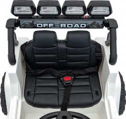Robustní elektrické auto pro děti s pohonem 2×35 W a baterií 12 V 7 Ah nabízí plynulý rozjezd, EVA pěnová kola pro pohodlí a LED osvětlení vpředu, vzadu i na střeše. Díky dálkovému ovladači 2.4G s bezpečnostním tlačítkem Stop, otevíracím dveřím a sedadlu z eko kůže s pásy je jízda bezpečná a maximálně zábavná.