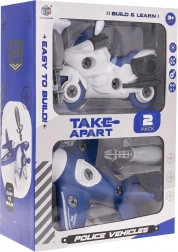 Rozebíratelný set zahrnuje motocykl a letadlo spolu se dvěma šroubováky, které dětem umožňují rozložit vozidla na jednotlivé části a pak je znovu složit. Navíc mohou složit loď podle obrázkového návodu.
