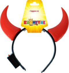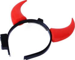 Parádní svítící čelenka s čertími rohy, která po stisku tlačítka bliká. Obsahuje 3× baterie LR44, takže ji můžete hned používat. Ideální na karneval, vánoční besídku a tematické párty. Vhodné od 3 let.