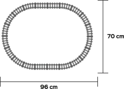 • Kolejiště 96 × 70 cm – 16 zahnutých + 4 rovné koleje