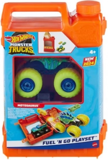 Ponořte se do epických dobrodružství s herním setem Hot Wheels Monster Trucks Kanistr Fuel 'N Go! Tento jemně zpracovaný set v podobě kanistru na benzín se otevírá na mini arénu pro kaskadérské kousky a místo ke opravám. S přiloženým vozidlem Motozaurus v měřítku 1:64 můžete snadno vyjet na rampu a srazit dvě bourané auta. Další vozidla a kamiony zvyšují úroveň destrukce! (Obsahuje dvě bouraná auta. Další vozidla na obrázcích se prodávají samostatně.)
