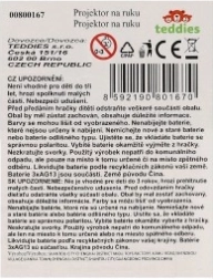 Projektor je dodáván s bateriemi 3× AG13 a 2 promítacími kotouči, takže si zábavu užijete hned po rozbalení. Vybrat si můžete ze tří barevných variant (modrá, růžová, tyrkysová). Balení na kartě je perfektní jako malý dárek.