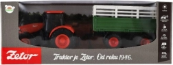 Červený traktor v designu ZETOR se zeleným vlekem snadno odpojíte pro různé farmářské práce a ještě zábavnější hru.