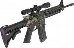 Velký, taktický karabin M4 na gelové kuličky je ideální pro venkovní hry a trénink přesnosti. Díky dvěma režimům střelby si užijete rychlou akci i přesné jednotlivé výstřely. Přiložený optický zaměřovač se zvětšením lze jemně doladit otočným ovladačem, aby byl cíl vždy v záměrné.