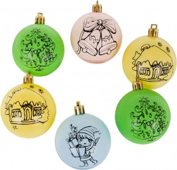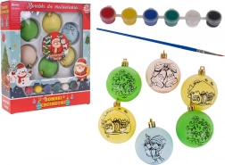 Tato sada obsahuje 6 ozdob k malování, které jsou vhodné pro děti od 3 let. Každá ozdoba je potažena vrstvou s vánočním motivem, který můžete vybarvit podle své fantazie. Součástí sady je také sada barev s štětcem a dodatečné šňůrky na zavěšení.