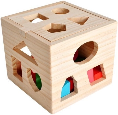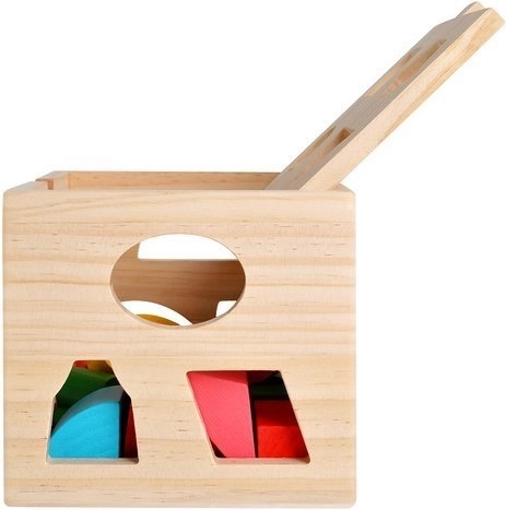 Děti si procvičí logické myšlení, jemnou motoriku i koordinaci oko–ruka při hledání správných otvorů pro 13 barevných tvarů.