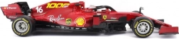 Věrná barevná kombinace, startovní číslo 16 a přesné sponzorské logotypy zachycují závodní speciál Charlese Leclerca tak, jak jej znáte z tratě.