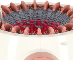 Díky 22 jehlám zvládne stroj pletení kruhových i plochých úpletů. Kompaktní rozměry 20 × 17 cm a vnitřní průměr 12,5 cm se hodí na rychlé projekty jako jsou čepice, nátepníky, šály či dětské doplňky. Součástí balení jsou i 2 klubíčka příze, jehla a háček pro snadné zapošití a dokončení výrobků.