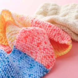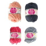 V balení najdete 4 klubka příze, sadu jehel a háček pro snadné dokončení okrajů a sešívání.