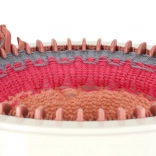 Husté rozložení jehel zajišťuje rovnoměrné stehy a možnost tvořit trubice i panely pro čepice, šály a doplňky.