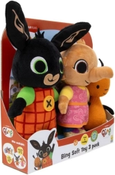 Objevte kouzlo seriálu BING s roztomilou sadou tří plyšových postaviček – Bing, Sula a Flop. Měkoučké plyšáky z vysoce kvalitního materiálu si děti zamilují a snadno s nimi znovu prožijí své oblíbené pohádkové scény. Vhodné již od 10 měsíců.