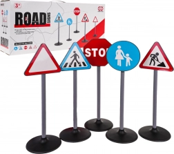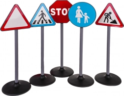 Tato sada dopravních značek obsahuje pět různých značek: stop, přechod pro chodce, varovný trojúhelník, práce na silnici a chodník. Vyrobeny jsou z kvalitního plastu a realisticky zpracovány s ohledem na detaily. Jsou rozměrově přizpůsobeny výšce dítěte, což z nich činí ideální vzdělávací hračku pro nejmenší.