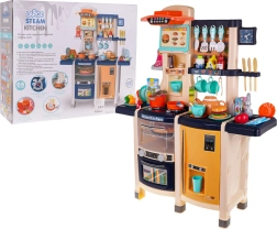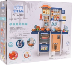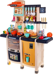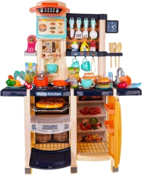 Tato interaktivní kuchyňka je vyrobena z nejkvalitnějšího plastu a je navržena v živých barvách, které povzbudí děti ke hře. Na pracovní desce kuchyně se nachází interaktivní varná deska s hořáky. Po otočení jedním knoflíkem uslyšíte zvuk vaření a druhým zvuk smažení, doprovázené osvětlením hořáků. Kohoutek skutečně vypouští vodu, což umožňuje dětem umývat hračkařské nádobí. Součástí sady je také maketa lednice s otevíracími dveřmi a zásobníkem vody, podsvícená trouba a myčka, kávovar, ventilační panel se světly a zvuky, a mnoho dalších doplňků.