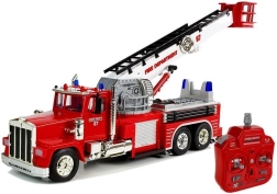 Tento detailně zpracovaný hasičský vůz je ideální pro malé záchranáře. Po zapnutí bliká modrými světly, vydává autentické zvuky a plynule jezdí všemi směry. Otočný a teleskopický žebřík se vysouvá a zasouvá pomocí samostatných tlačítek na ovladači, takže zásah zvládnete z každé strany. Praktické DEMO tlačítko předvede automatickou ukázku funkcí.