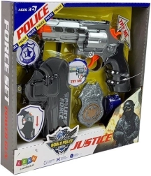 Tato policejní výbava je ideální na karneval, tematické hry i každodenní dobrodružství. Revolver v kombinaci stříbrné a černé barvy při stisku spouště a při přebití vydává zvuk výstřelu a doplňuje jej světelný efekt, díky kterému je hra ještě realističtější. Děti si snadno rozvinou fantazii, role-play dovednosti i sociální interakci.