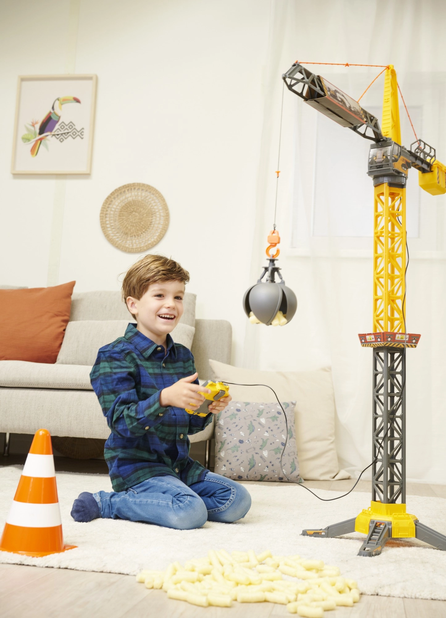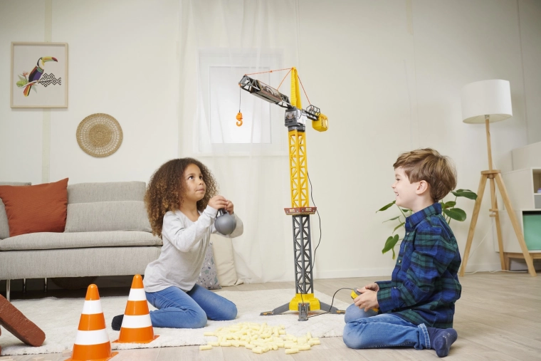 Dětský jeřáb VOLVO od Dickie Toys přináší autentickou stavbu do dětského pokoje. Díky otočnému ramenu o 360°, funkčnímu navijáku a demoliční kouli, která se otevírá a slouží jako kleště, děti snadno zvedají a přenášejí malé předměty. Robustní konstrukce a stabilní základna zajišťují bezpečnou hru.