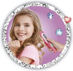 Tato zábavná sada umožňuje dětem vytvořit si originální ozdoby do vlasů bez lepidla a nepořádku. Postup je jednoduchý: vložte diamant do horní části aplikátoru, do spodní části přezku, přiložte jemný pramen vlasů a stiskněte – diamant zůstane připevněný pomocí sponky. Snadné, rychlé a efektní.