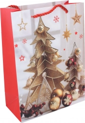 Tato elegantní dárková taška je určena pro vánoční dárky a kombinuje styl s praktičností. Je nabízena ve čtyřech variantách, a tím umožňuje přizpůsobit váš výběr různým dárkům a osobním preferencím. Velikost 18x24x8,5 cm je ideální pro menší až středně velké dárky.