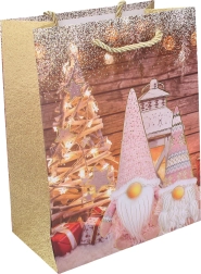 Usnadněte si vánoční balení dárků s prostornou dárkovou taškou ve velikosti L. Taška je navržena tak, aby poskytla spolehlivou oporu větším dárkům a zároveň působila elegantně a slavnostně. Díky univerzálnímu vánočnímu designu se hodí pro děti i dospělé.