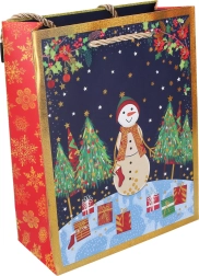 Stylová vánoční dárková taška ve velikosti L o rozměrech 42 × 31 × 12 cm je ideální pro zabalení větších dárků. Nabízí 4 sváteční designy, pevné provedení a pohodlné ucho pro snadné přenášení.