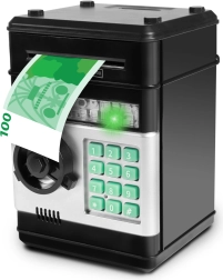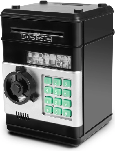 Dětský pokladní trezor je ideálním nástrojem pro rozvoj finanční gramotnosti u dětí. Svým moderním designem v černé a stříbrné barvě přitahuje pozornost a motivuje malé spořiče. Trezor funguje jako bezpečné místo pro úschovu peněz a umožňuje nastavení vlastního PIN kódu. Pokud je trezor dlouho otevřený, spustí se alarm.