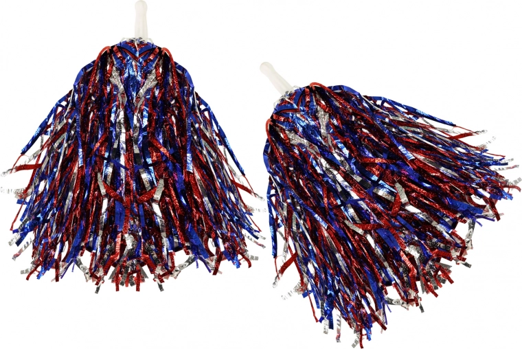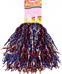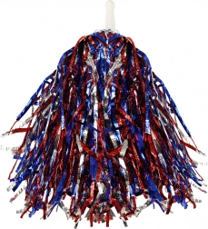 Vyrobeno z kvalitních materiálů, tento pom-pom zahrnuje modré, červené a stříbrné lesklé pásky, které přidají výjimečný vzhled vaší události. Praktické plastové držátko zajišťuje pohodlný úchop a snadné používání.