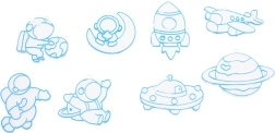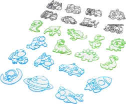 V sadě najdete oblíbené motivy z kategorií vesmír, prehistorie a auta, které osloví kluky i holky. Tvoření rozvíjí jemnou motoriku, trpělivost a kreativitu, přičemž děti si odnesou vlastní originální výtvory, na které mohou být právem hrdé.
