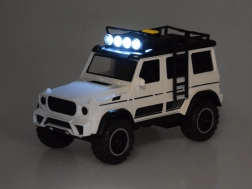 Po stisku horního tlačítka se rozsvítí LED světla a ozve se klakson či výstražné signály – zážitek jako u skutečného off-roadu.