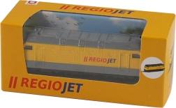 Objevte realistický model lokomotivy v barvách REGIOJET, který vyniká detailním zpracováním a kompaktní velikostí. Kovové provedení zajišťuje pevnost a dlouhou životnost, díky čemuž je lokomotiva skvělá jak na hraní, tak do sbírky.