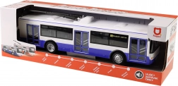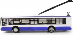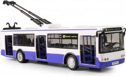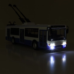 Objevte zábavu z městské dopravy s modrým trolejbusem, který mluví česky a při otevření dveří přehrává hlášení zastávek. Realistické detaily v měřítku 1:43 a délka 28 cm z něj dělají parádní model i odolnou hračku pro každodenní hraní.