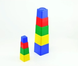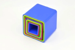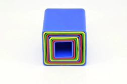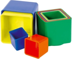 Devět barevných plastových kostek pro nejmenší podporuje rozvoj jemné motoriky, logického myšlení a koordinace oko–ruka. Duté kostky lze skládat do věže i vkládat do sebe, největší má 9 × 9 × 9 cm. Vhodné od 1 roku, vyrobeno v ČR. Barevné provedení je v mixu barev dle skladových zásob.