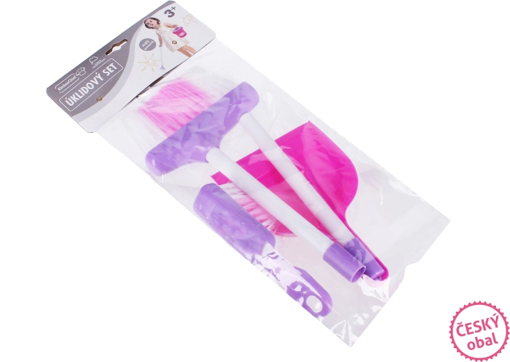 Praktický dětský úklidový set se skládá ze 3 dílů – lopatky, smetáčku a skládacího smetáku. Vyrobeno z odolného plastu v růžovo-bílé barvě, ideální pro hru na domácnost a rozvoj jemné motoriky. Skládací smeták se snadno vejde do menší bedničky na hračky.
