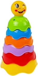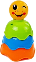Hrací pyramida v duhových barvách ze stohovacích kelímků podporuje rozvoj dítěte již od prvních měsíců. Kelímky z kvalitního, bezpečného plastu mají hladké, zaoblené hrany a na vrchu je nejmenší kelímek s veselým obličejem. Hračka rozvíjí jemnou motoriku, koordinaci oko–ruka, rozpoznávání barev a tvarů i logické myšlení.