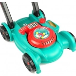 Hračka kosačka s otáčecí rukojetí a pestrobarevnými kuličkami zábavně simuluje skutečnou sekačku.