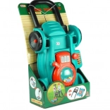 Tato sada zahrnuje také ochrannou přilbu pro bezpečnost během simulovaných venkovních činností. Kosačka a její kolečka jsou navržena pro použití jak uvnitř, tak venku, což umožňuje vaši malí zahradníci si hrát za každého počasí.