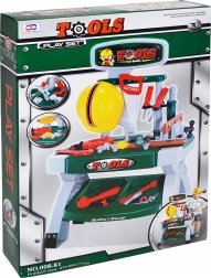 Dětský pracovní stolek s bohatou sadou nářadí pro malé kutily nabízí vše potřebné pro kreativní hru a rozvoj motoriky. Obsahuje helmu, šrouby, matice, ozubená kola, kleště, kladivo, klíče, pilku, kombinačky, šroubováky i svěrák. Kompaktní rozměry 44 × 28 × 71 cm zaručují snadné umístění v dětském pokoji.