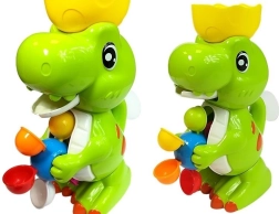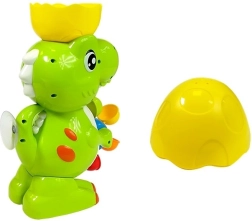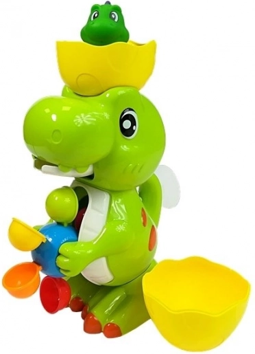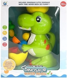 Roztomilý zelený dinosaurus promění každé koupání v zábavné vodní představení. Stačí nabrat vodu do kelímku ve tvaru půlky vajíčka, nalít ji na hlavu dinosaura a pozorovat, jak voda vytéká tlamou a roztáčí barevný vodní mlýnek. Děti si přitom trénují zručnost a učí se principům příčiny a následku.