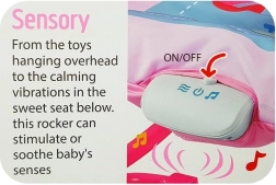 .Kolébka je napájena 2 kusy baterií AA 1.5V, které nejsou součástí balení. Vhodné pro děti od prvních dnů života.Soulad s normou EN71. Hračka je vyrobena z certifikovaného materiálu.