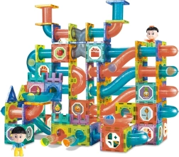 Tato svítící kuličková dráha propojuje oblíbené magnetické stavebnice s dynamikou rychlých kuliček. Díky LED prvkům a přídavným reflektorům je jízda kuliček ještě atraktivnější a viditelná i při tlumeném světle. Děti mohou stavět různé varianty drah s rampami, smyčkami a překážkami, zkoušet nové nápady a rozvíjet představivost.