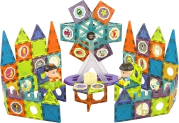 Objevte svět konstrukcí s magnetickými dílky, které se k sobě spolehlivě přichytí pomocí magnetů a západek. Děti mohou stavět hrady, domečky, jednoduché domino i vlastní zábavní park s ruským kolem. Stavby lze snadno rozložit a znovu postavit – fantazii se meze nekladou.