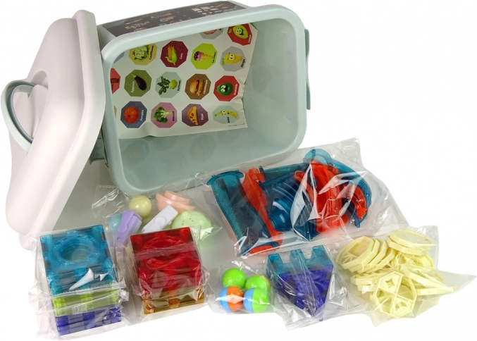 - 75 dílů pro tvorbu 3D staveb a kuličkových drah