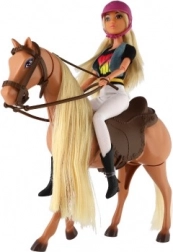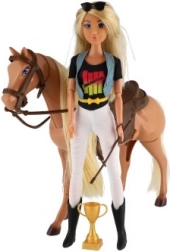 Panenka má pohyblivé klouby pro přirozené pózování a snadné usazení do sedla. Součástí je jezdecká helma a oblečení, díky kterým je připravena vyrazit na projížďku i závody.